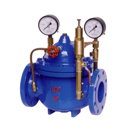 200X減壓穩壓閥由主閥、導閥、針閥、球閥、微型過濾器和壓力表組成水力控制接管系統。使用時,當調定出口壓力后,能自動保持穩定出口壓力。